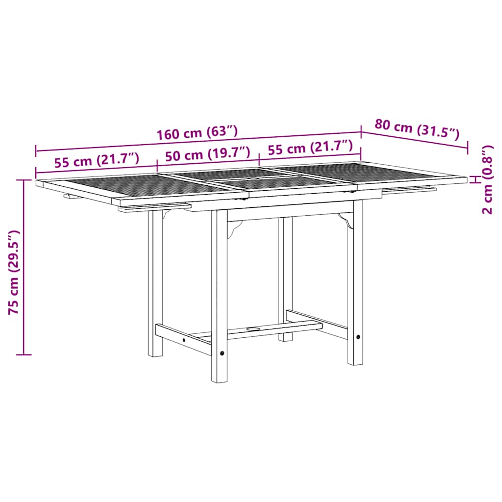 Lisäksi ne kestävät kosteutta ja vastustavat tuhohyönteisiä. Sarjassa on kaunis viimeistely, joka antaa puulle lämpimän värin. Erityisen suunnittelun ansiosta ruokapöytä voidaan lisätilaa tarvittaessa pidentää 160 cm asti. Pöydässä on reikä aurinkovarjoa varten, jotta voit pysyä suojassa suoralta auringonpaisteelta. Tuolit voidaan taittaa helposti, kun ne eivät ole käytössä. Ne tarjoavat miellyttävää istumamukavuutta, kun vietät aikaa perheesi ja ystäviesi kanssa. Sarja on helppo puhdistaa kostealla liinalla.