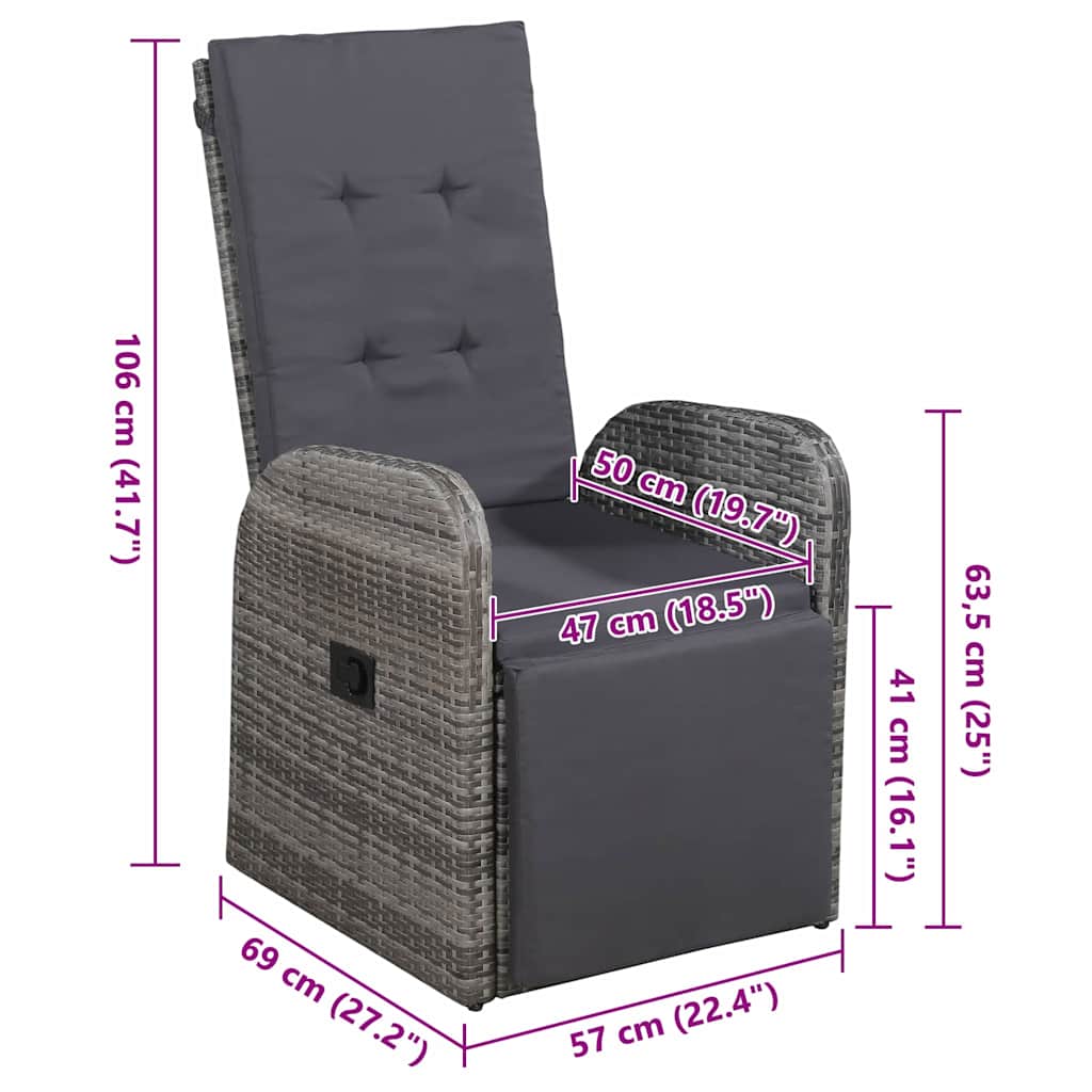 5-osainen puutarhaterassisetti tyynyillä, harmaa, polyrottinki, akaasia