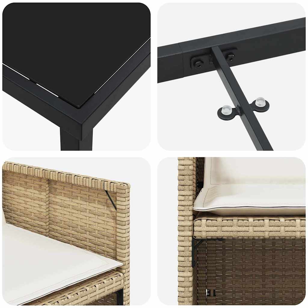 5-osainen puutarhavaihtoehto tyynyillä, beige polyrottinki