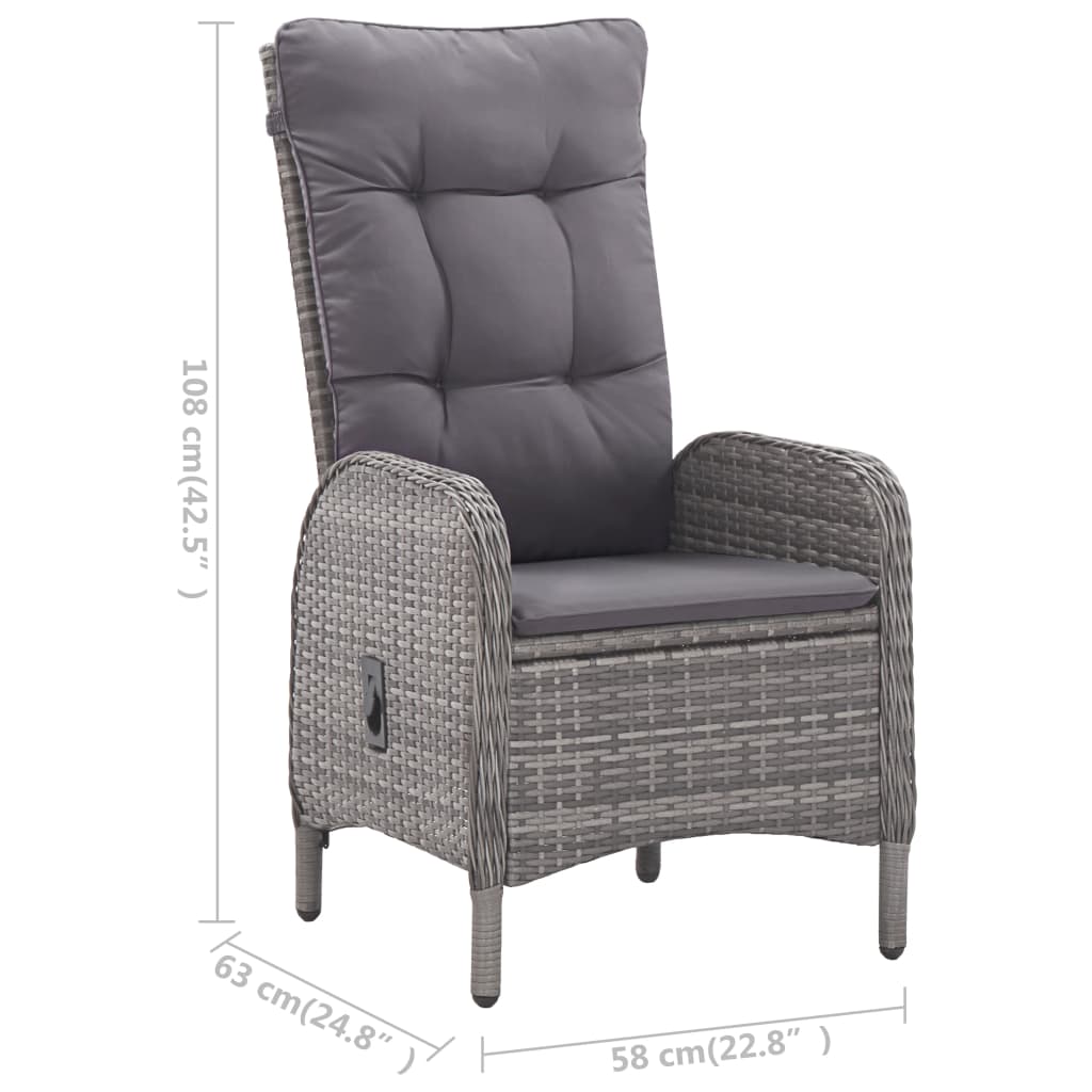 5-osainen Ulkoruokailuryhmä polyrottinki ja lasi harmaa