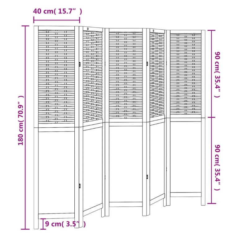• Joustava ja helppo taittaa: Jokainen osio on yhdistetty toisiinsa kolmella metallisaranalla. Paneelin ylä- ja alaosat on yhdistetty piilotetuilla 2-in-1 saranoilla. Huoneenjakajapaneeli voidaan siis helposti taittaa jossain määrin tarpeidesi mukaan tilan säästämiseksi.