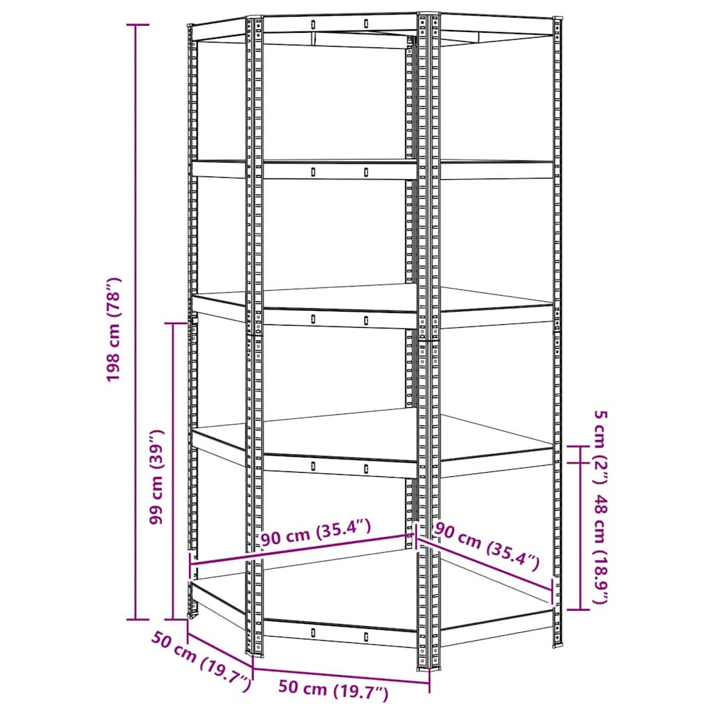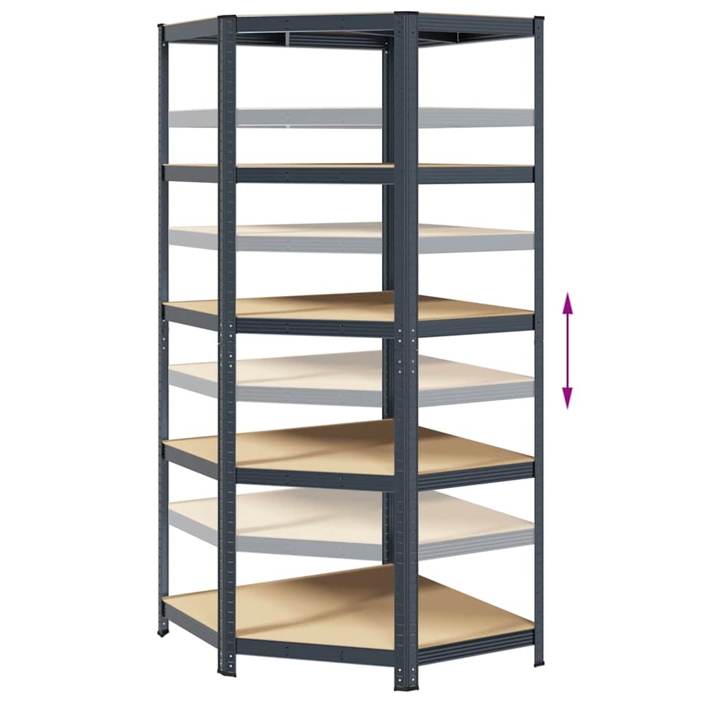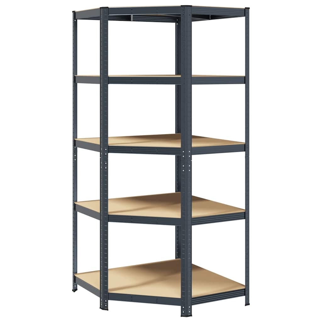 5-tasoinen Varastokulmahylly antrasiitti teräs ja tekninen puu