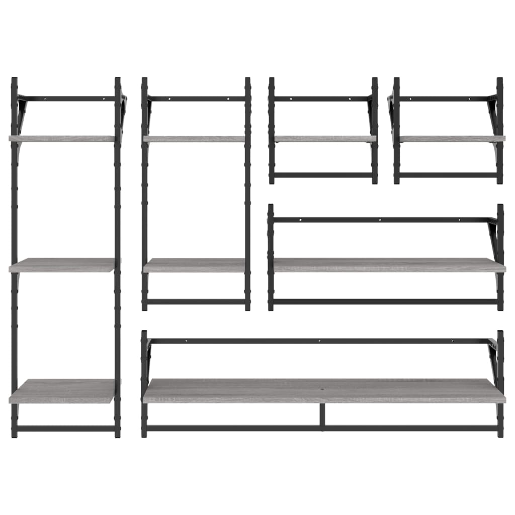 6-osainen Seinähyllysarja tangoilla harmaa Sonoma tekninen puu