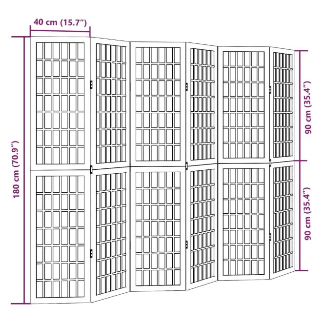 6-Paneelinen tilanjakaja valkoinen täysi keisaripuu