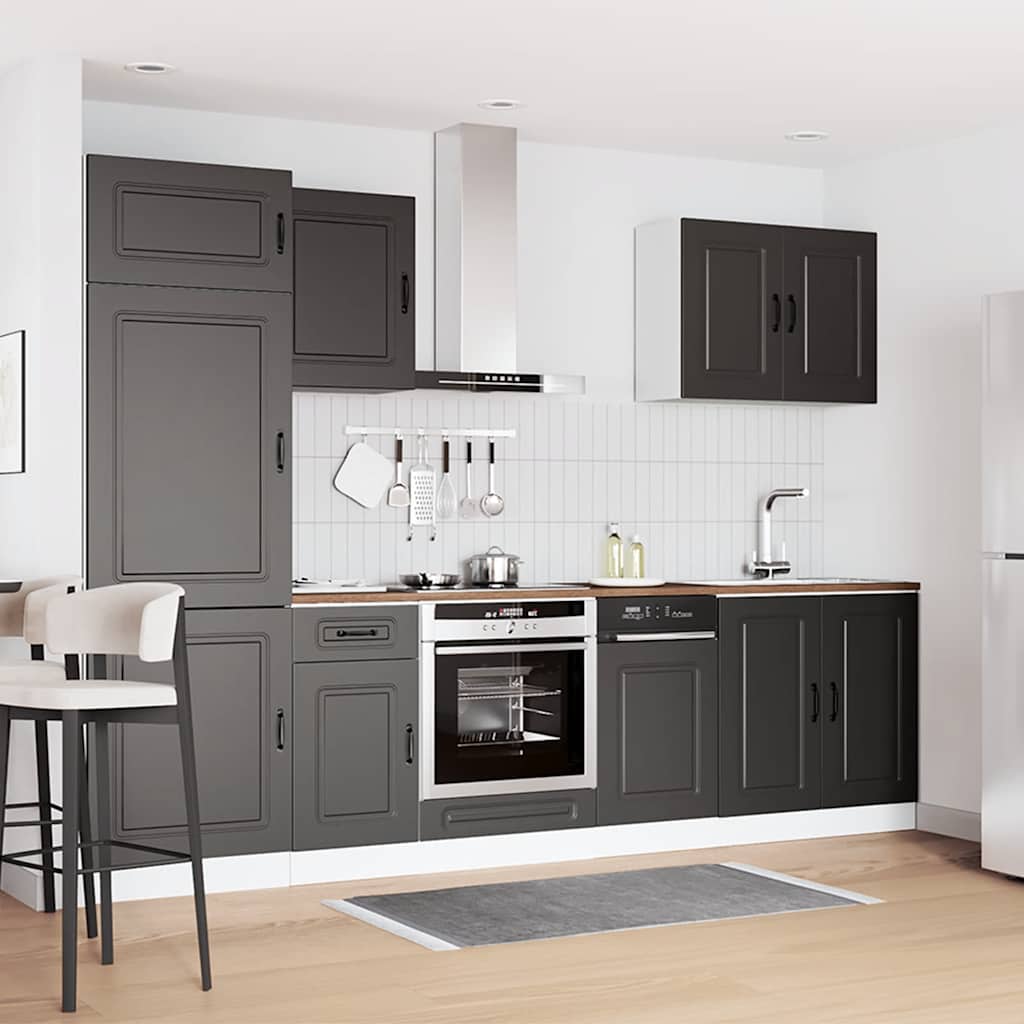 7-osainen keittiökaappisarja Kalmar musta suunniteltu puu
