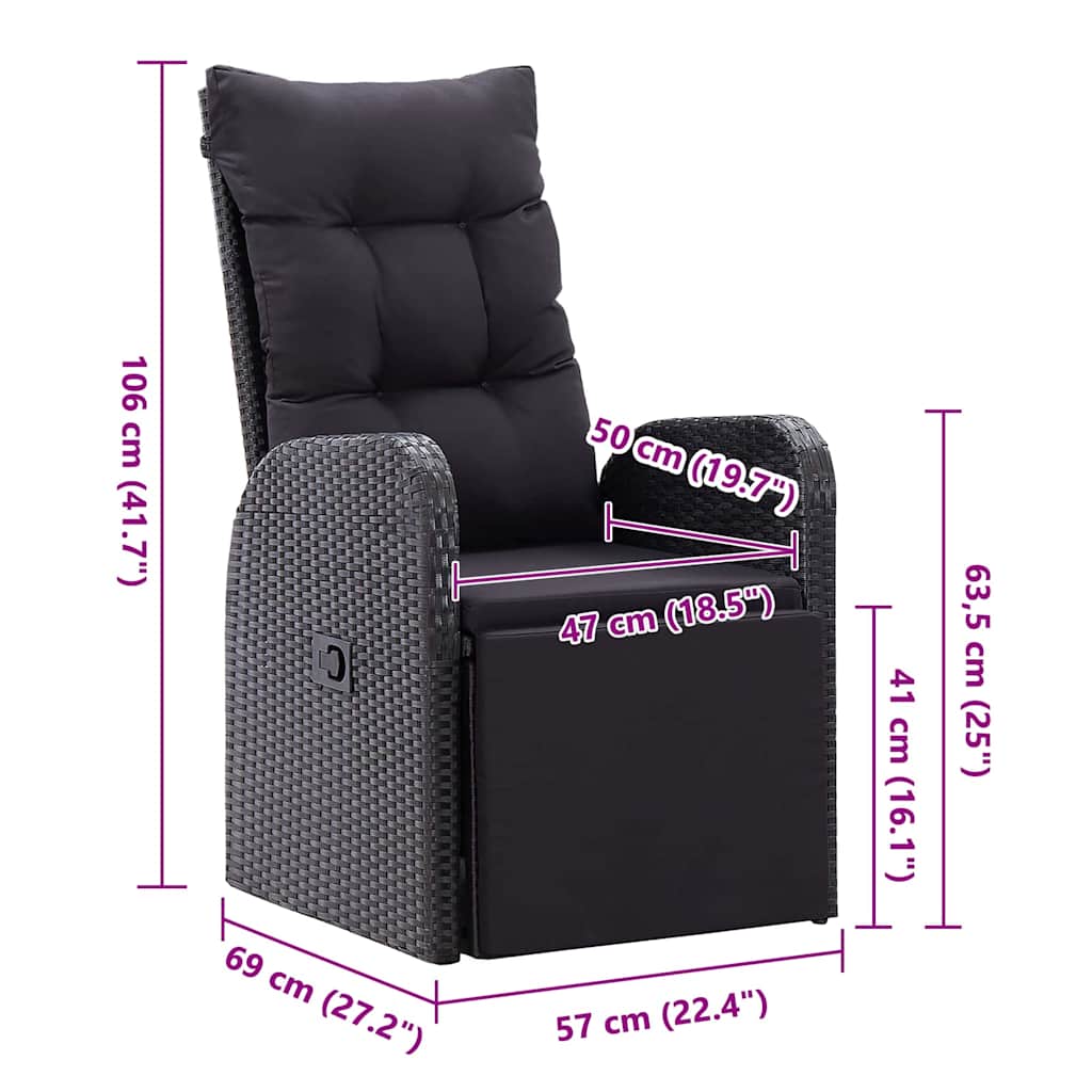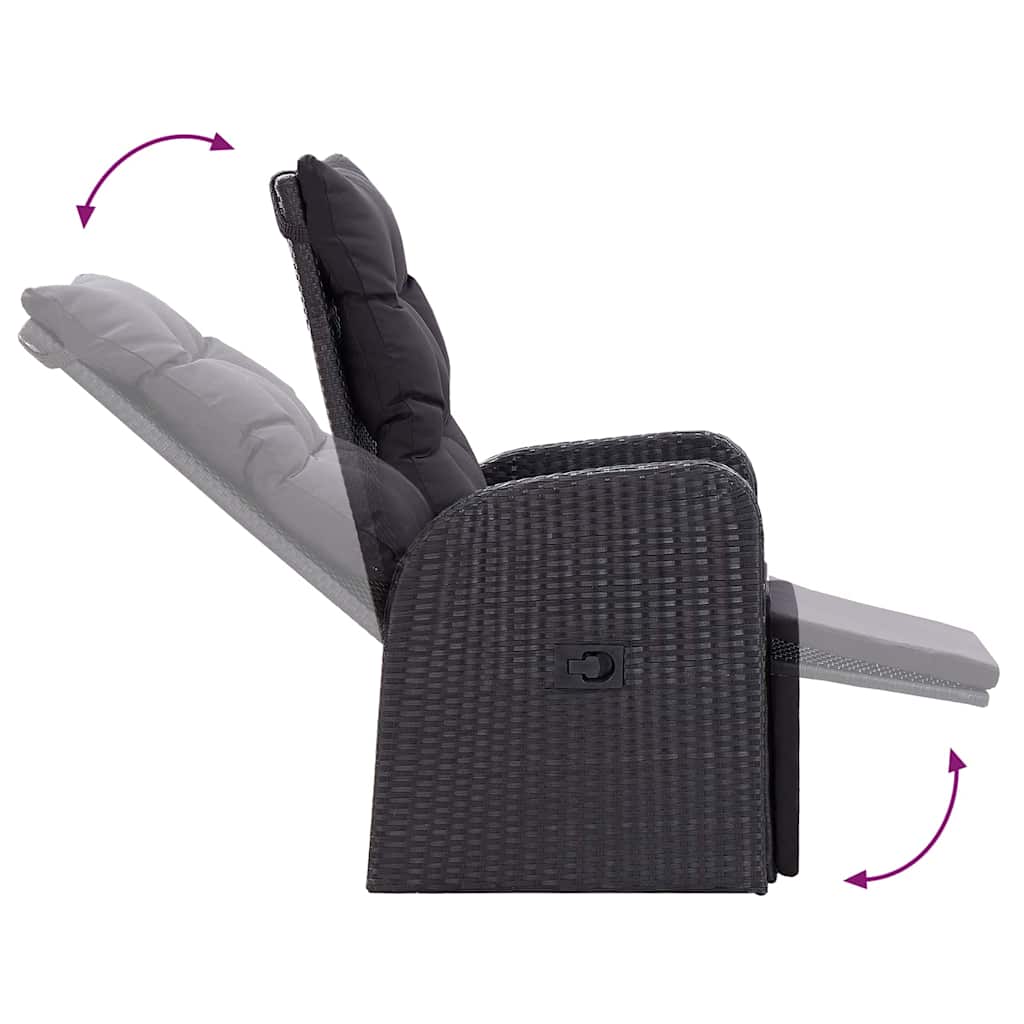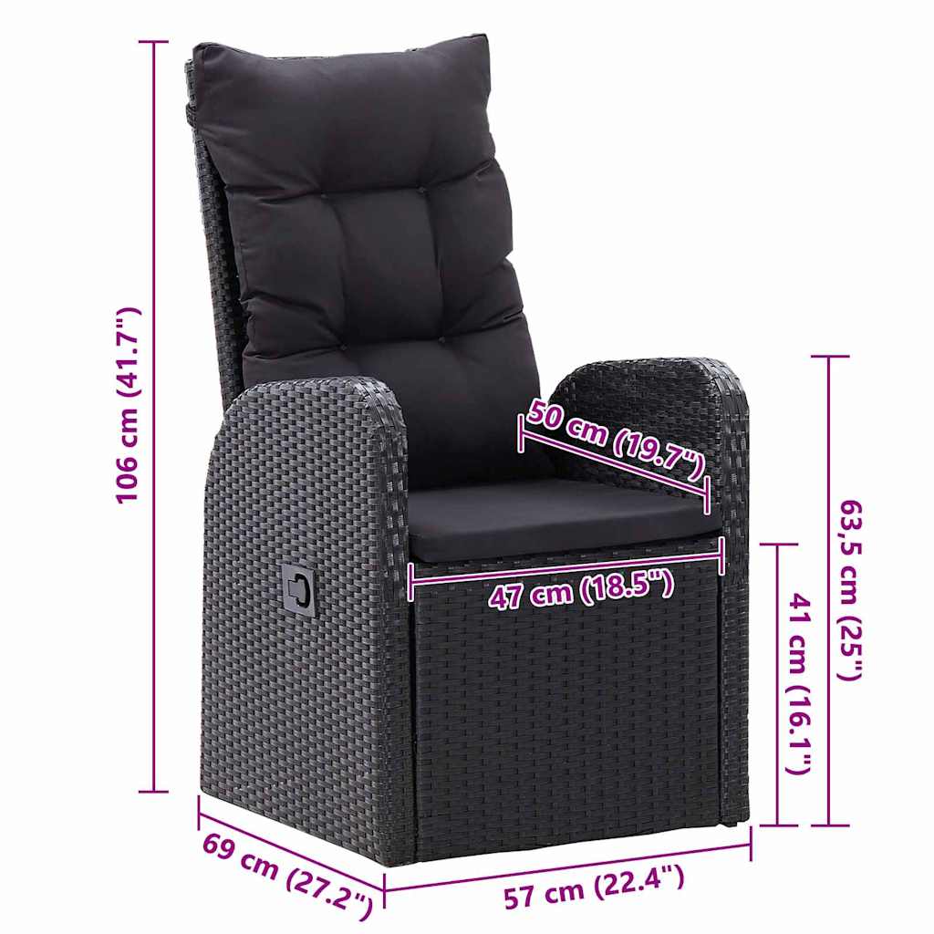 7-osainen puutarhan ruokailusarja tyynyillä Musta polyrottinki akaasia