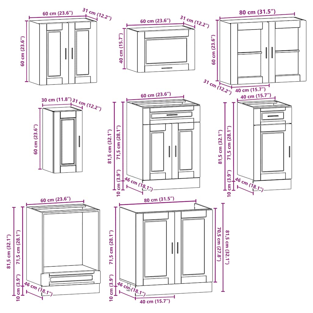 8-osainen keittiökaappisarja Kalmar harmaa sonoma