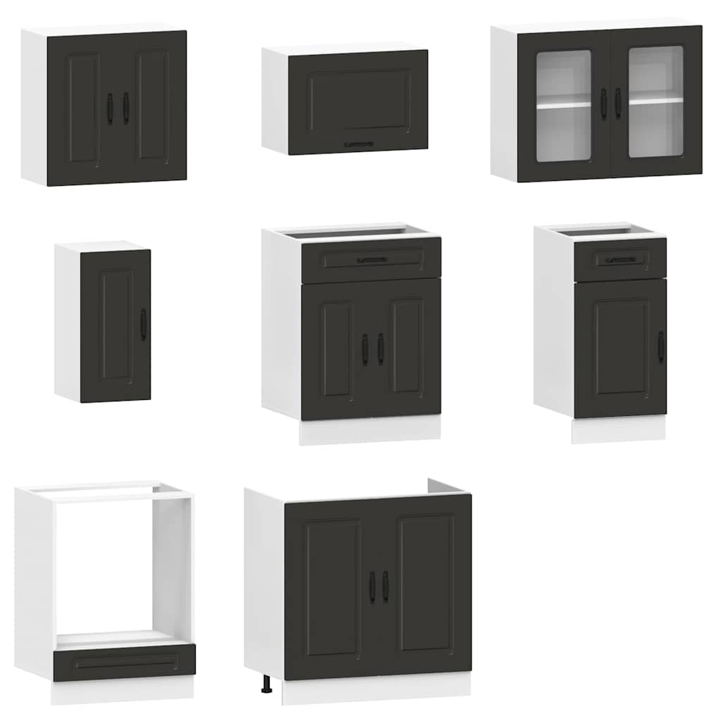 8-osainen keittiökaappisarja Kalmar musta suunniteltu puu