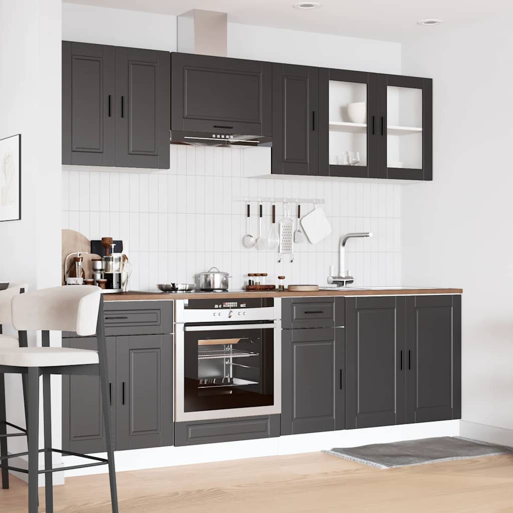 8-osainen keittiökaappisarja Kalmar musta suunniteltu puu