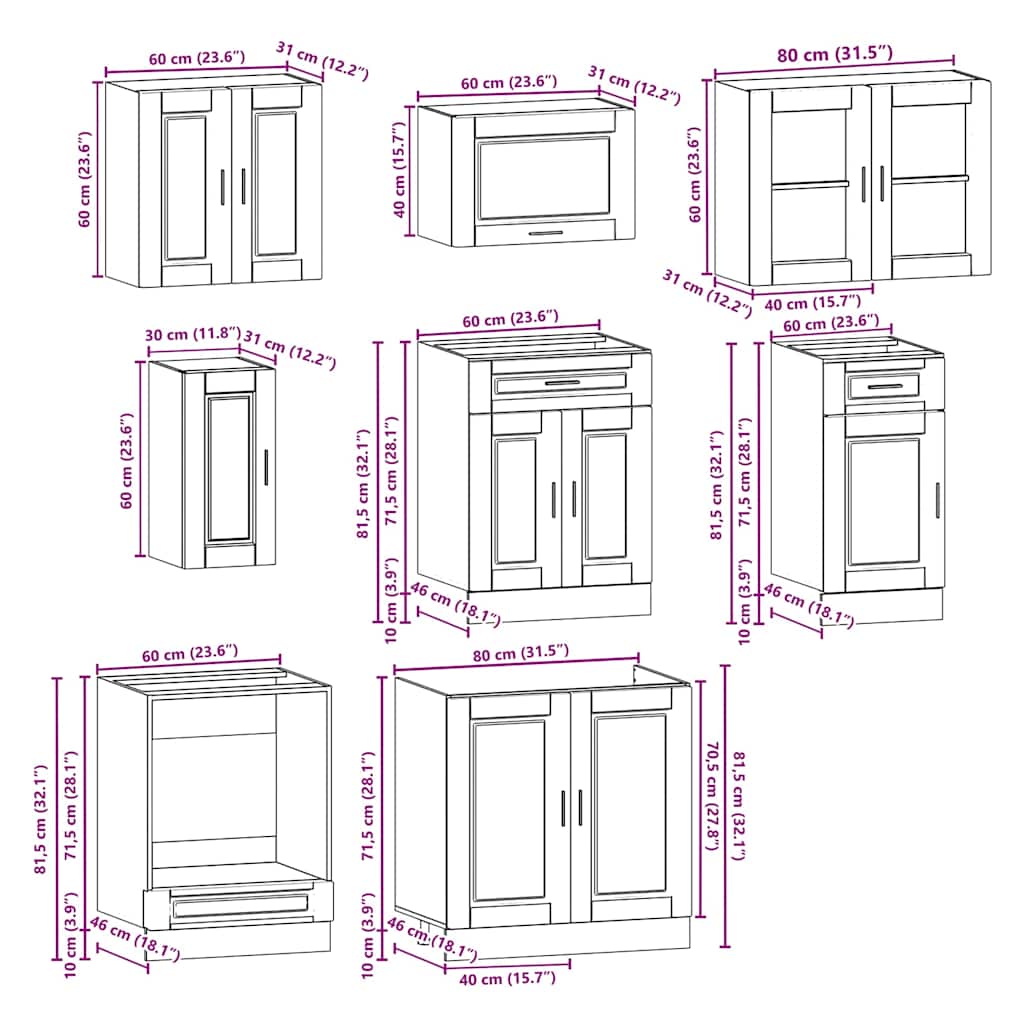 Tämä kahdeksanosainen, yksinkertaista tyyliä edustava keittiön kaappisarja optimoi keittiösi tilat tarjoten runsaasti säilytystilaa henkilökohtaisille esineillesi!