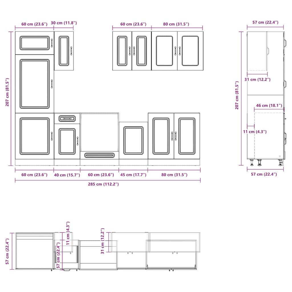• Runsaasti säilytystilaa: Keittiön kaappisarjassa on useita osastoja, ja se tarjoaa riittävästi tilaa kulhoille, lautasille, kattilille ja muille keittiökoneille.