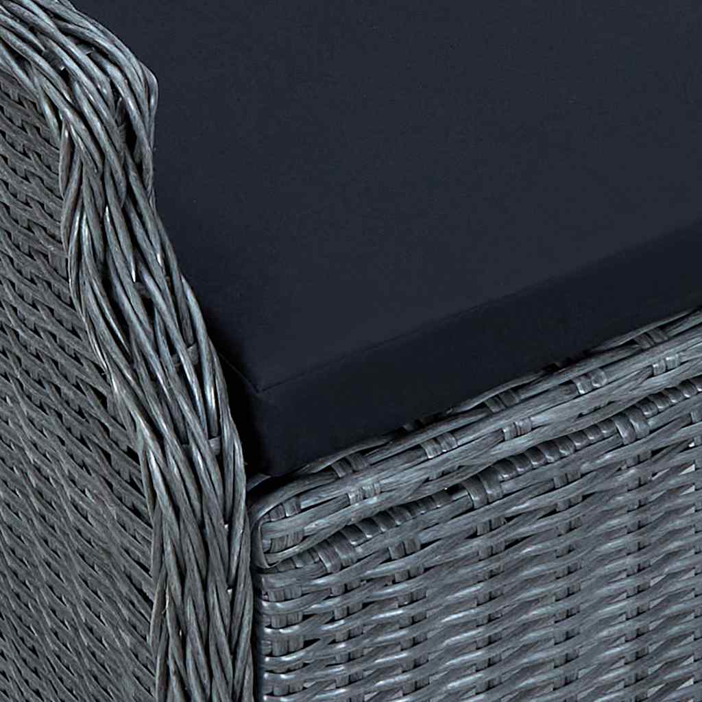 Ruokapöytä on valmistettu täydestä öljytystä akasiapuusta, joka tekee siitä vakaan, kestävän ja helppohoitoisen. Ulkotuolin jauhemaalattu teräsrunko on päällystetty pyöreällä PE-rottingilla. Se on tukeva ja helppo puhdistaa. Paksusti pehmustetut tyynyt lisäävät mukavuutta vapaa-aikaasi. Vetoketjuilla varustetut tyynynpäälliset voidaan irrottaa ja pestä. Kaasujousimekanismin ansiosta selkänoja voidaan säätää haluamaasi asentoon. Koskettamalla sivussa olevaa painiketta selkänoja voidaan kallistaa haluamaasi asentoon. Puutarhatuolia on helppo siirtää kevyen rakenteensa ansiosta.