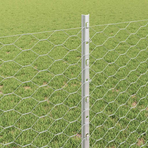 Aidan pylväät 11 kpl U-kanava 80 cm Kuumasinkitty teräs, Kuusikulmainen aita 0,8×50 m Kuumasinkitty teräs