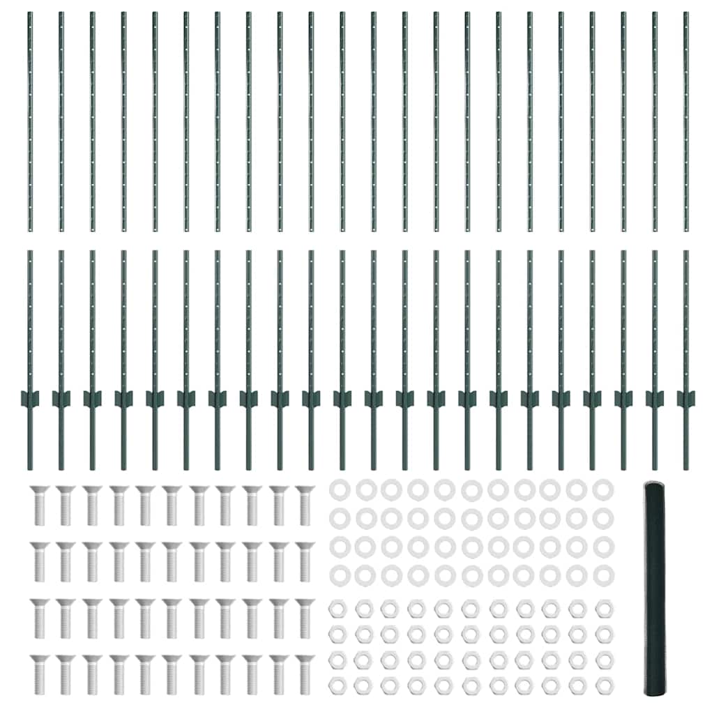 Aitakappaleet 11 kpl U-kanava Vihreä 140 cm Teräs, Kuusikulma-aita Vihreä 1.4×50 m Teräs