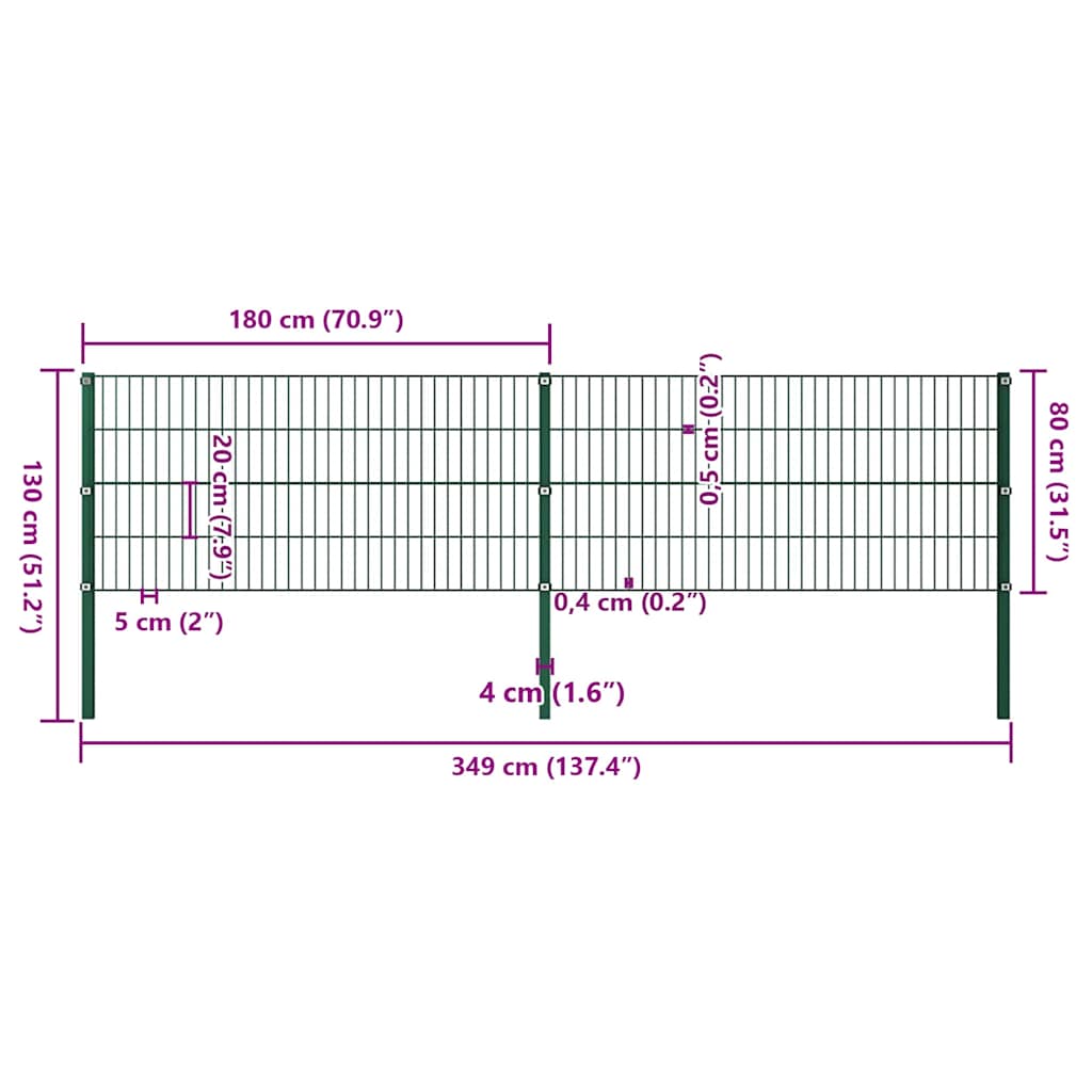 • Toimitus sisältää 4 x 2 D-aitapaneeli ja 3 tolppaa