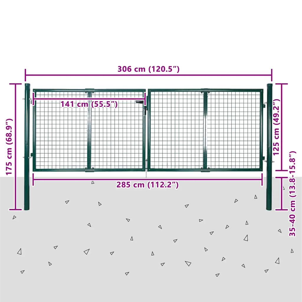 Portti on valmistettu raskaasta teräksestä, sillä on tukeva rakenne ja se on jauhemaalattu ruostetta vastaan. Portissa on pulttisarana ja sivutolpat sisältyvät toimitukseen asennuksen helpottamiseksi. Mukana on myös kolme yhteensopivaa avainta.