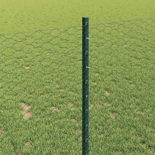 Aitapostit 11 kpl U-kanava Vihreä 100 cm Teräs, Kuusikulmainen aita Vihreä 1×100 m Teräs