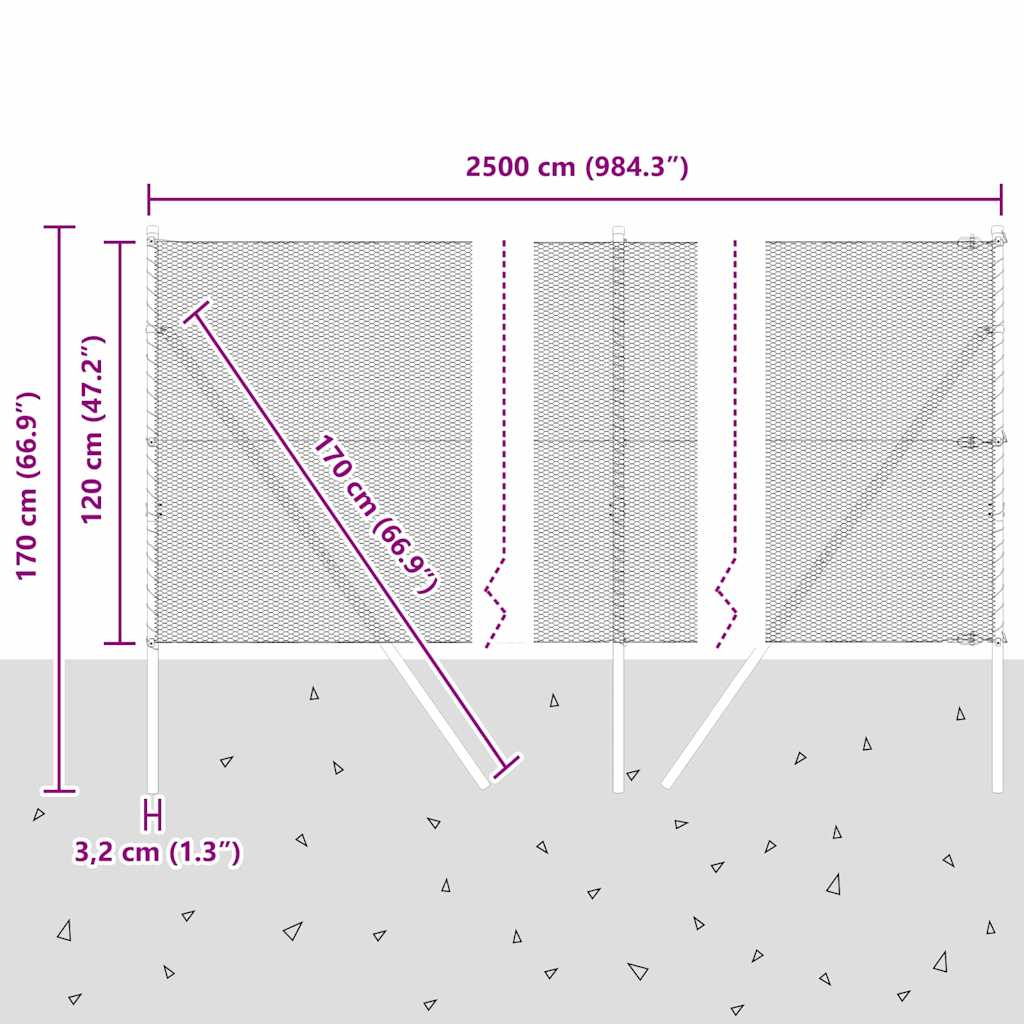 • Kattava kitti: Mukana kaikki tarvittava onnistuneeseen asennukseen, mukaan lukien 12 pylvästä, 1 rulla verkkoa, 2 lankapakettia ja 2 aitalukkua.