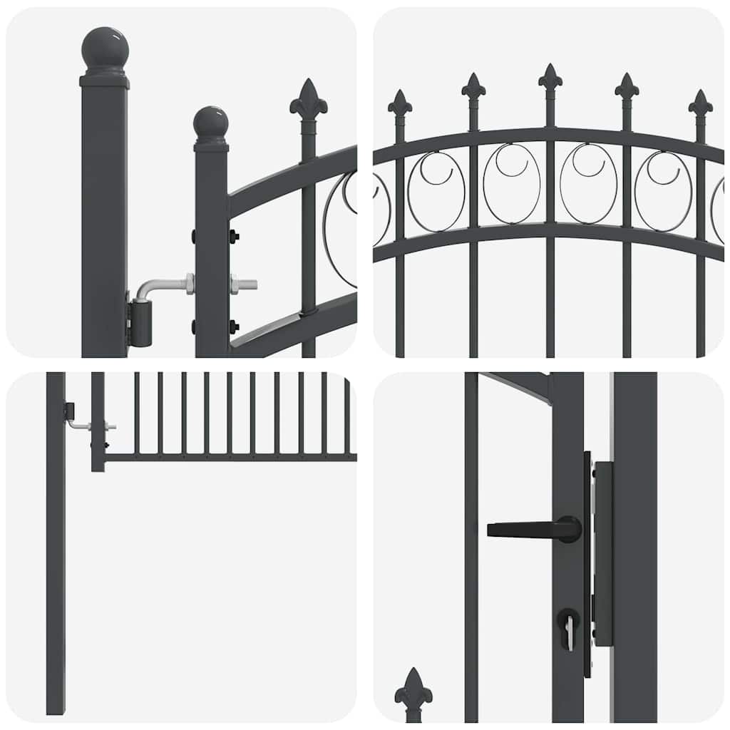 • Tyylikäs kaareva muotoilu: Elegantti kaareva yläosa ja koristeelliset piikit sopivat moniin erilaisiin puutarhatyyleihin. Muotoilu yhdistää klassisen eleganssin moderniin otteeseen, parantaen ulkotilan esteettistä arvoa. Se sulautuu kauniisti puutarhojen luontoon ja muuttaa tavallisen esteen tyylikkääksi korostukseksi.