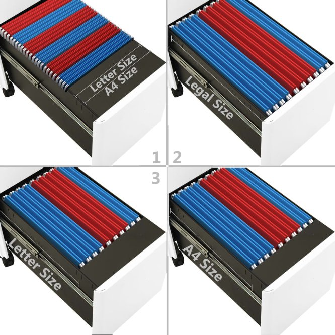 Teräksestä valmistettu toimistokaappi on kestävä ja todella helppo puhdistaa. Kolmella laatikolla ja yhdellä lukolla varustettu arkistokaappi antaa sinun järjestää dokumenttisi eri kategorioihin ja samalla voit pitää ne turvassa. Jokaisessa laatikossa on yksi irrotettava ripustustanko, jotka voidaan vapaasti yhdistää säilyttämään eri kokoisia kansioita. Siirrettävässä kaapissa on kynätarjotin, joten työpöytäsi pysyy siistimpänä. Kolmeosaisilla kuulalaakerikiskoilla varustetut laatikot avautuvat ja sulkeutuvat sulavasti, jopa suuren taakan alla laatikot avautuvat kokonaan. Kaapin oikeat ja vasemmat kulmat ovat pyöreitä.