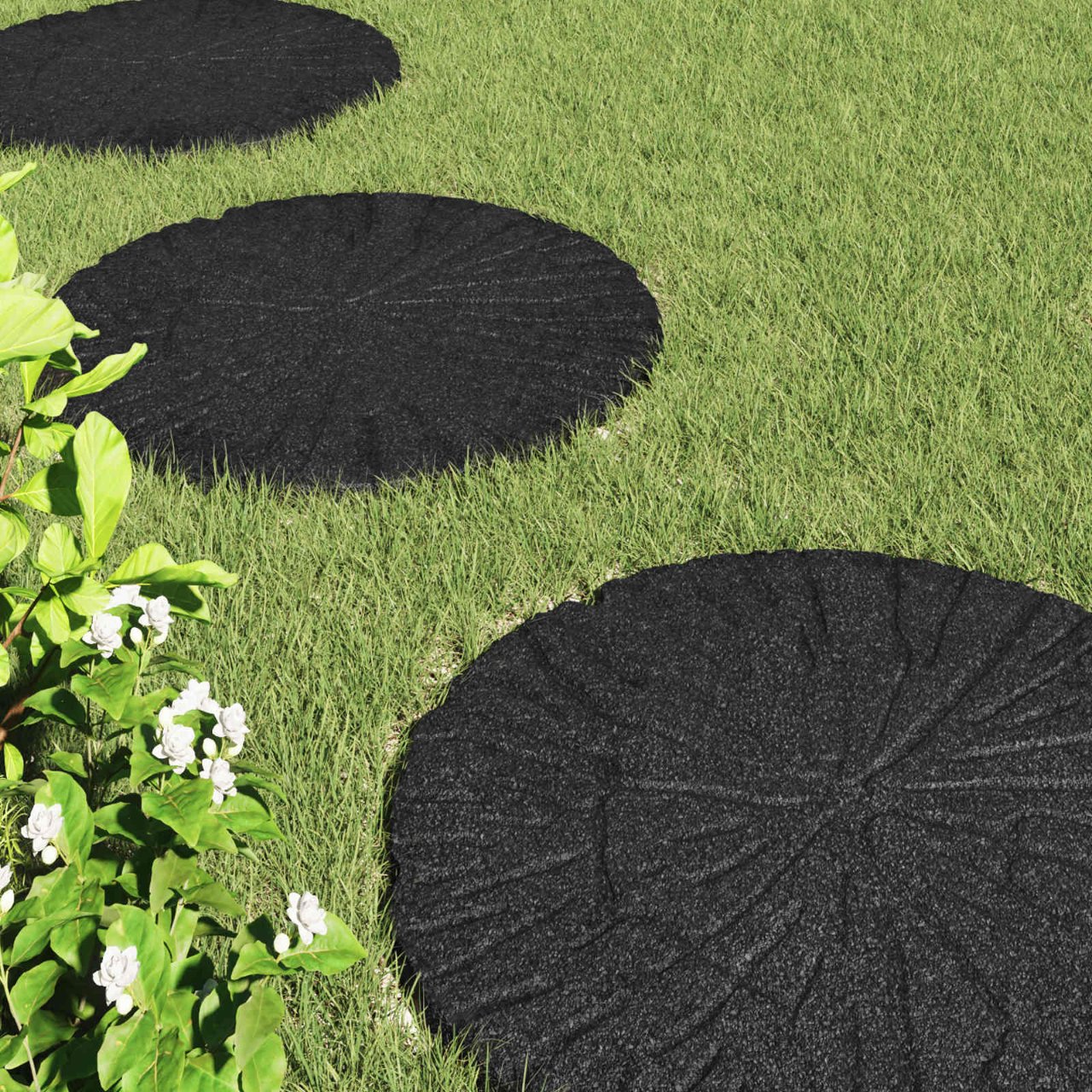 • Kestävät kumimateriaalit: Nämä kivet on tehty luonnollisista ja kierrätetyistä kumista, varmistaen kestävyyden. Pintarakenteessa on liukastumista estävä tekstuuri, mikä tekee niistä tukevaksi vaihtoehdoksi. UV-suojattu materiaali säilyttää kiven muodon ja ulkonäön pitkään.