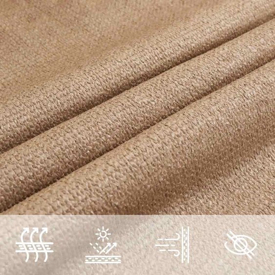 Aurinkopurje on valmistettu 100-prosenttisesta HDPE:stä (suurtiheyspolyeteeni) ja se suojaa sinua suoralta auringonvalolta, mutta sallii ilman kiertää ja läpäisee vettä. HDPE on erityisesti käsitelty, jotta se ei homehdu ja jotta se sietää UV-säteitä. Aurinkopurje on helppo pystyttää jokaisessa kulmassa olevien ruostumattomien teräskiinnikkeiden ja mukana tulevien köysien ansiosta.