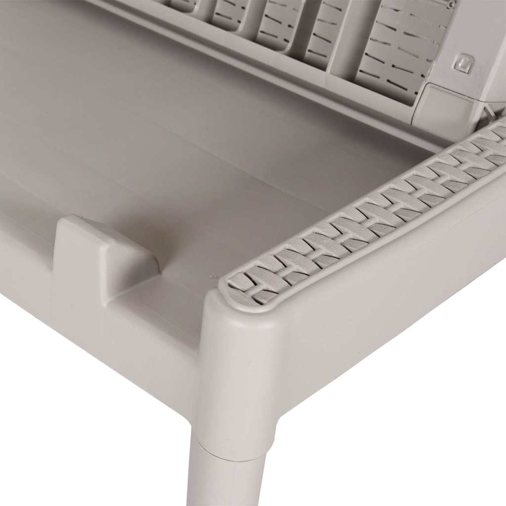 • Kestävä materiaali: Polypropeeni (PP) on suosittu muovi, joka on myös yksi ulkokalusteiden käytetyimmistä materiaaleista. Se on kevyt, kestävä ja iskunkestävä. Lisäksi aurinkotuoli on UV-kestävä ja helppo hoitaa.