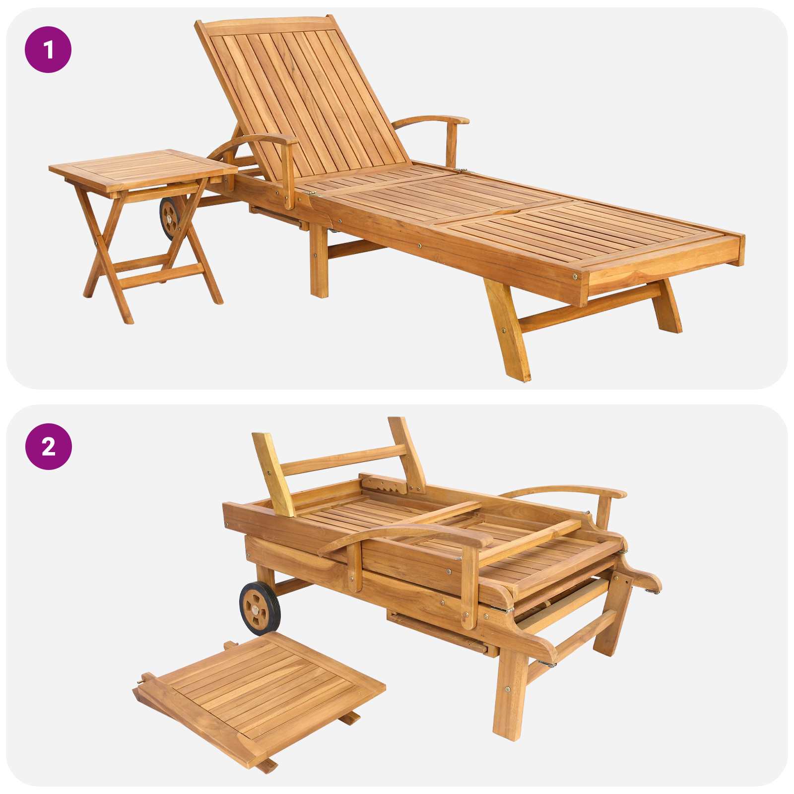 Tämä moderni tiikkilounge-tuoli yhdistää kauniin muotoilun ja käytännöllisen mukavuuden. Valmistettu kestävästä tiikkipuusta, sen siluetti on tyylikäs ja luonnollinen sävy luo täydellisen yhdistelmän puutarhaan, patiolle tai terassille. Tämä tuoli tarjoaa mukautuvan paikan rentoutumiseen ja tuo tyyliä ulkotiloihisi.