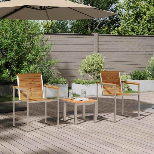 • Kestävä rakenne: Valmistettu laadukkaista täysistä akaasiapuista. Tämä setti on luotu kestämään ulko-olosuhteissa; se sopii täydellisesti rentoihin ja muodollisiin kokoontumisiin.
