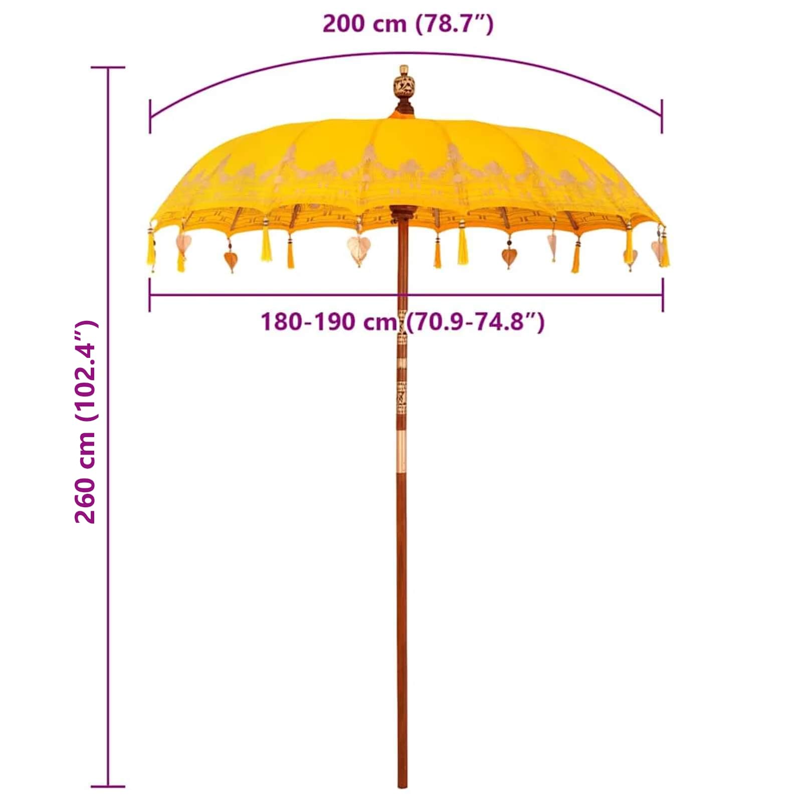 Tämä balilainen patioaurinkovarjo tuo rentoa tyyliä ja kätevää käyttöä ulkotiloihisi. Ihanteellinen puutarhoihin ja terasseihin, sen pyöreä, läpinäkymätön muotoilu luo rauhoittavaa tunnelmaa, ammentaen inspiraatiota balilaisesta kulttuurista. Valmistettu puuvillasta ja puusta, siinä on sileä lakattu pinta, joka huokuu eleganssia ja kestävyyttä. Loistava aurinkoiselle säälle, se tuo mukanaa rentoutumista ja suojaa, joten se on täydellinen kesätapahtumiin tai tähtitaivaan alla vietettyihin iltoihin.