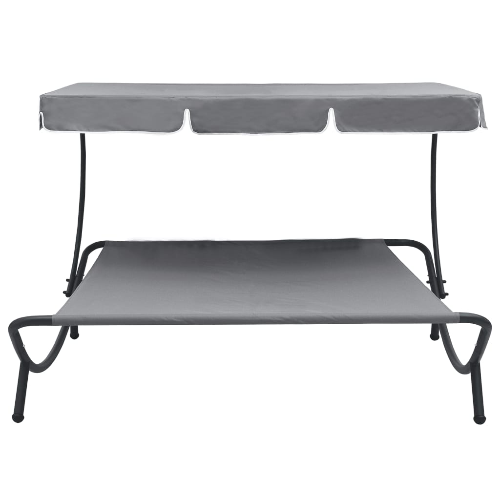 Säänkestävästä Oxford-kankaasta valmistettu aurinkovuode sopii ympärivuotiseen ulkokäyttöön. Jauhemaalattu teräsrunko tekee aurinkotuolista vakaan ja takaa sille pitkän käyttöiän sekä erinomaisen kestävyyden. Katos on valmistettu vettähylkivästä polyesteristä ja se takaa optimaalisen loikoiluhetken. Kahden hengen aurinkovuoteen suuri katos tarjoaa suojaa auringolta. Se on helppo koota.