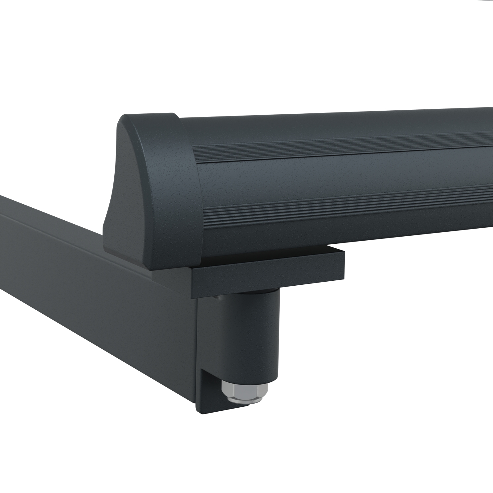 Tämä markiisi on tehty säänkestävistä, UV-suojatuista materiaaleista, ja siinä on säädettävä kulma 80 astetta, joka tuo upeaa varjoa ja suojaa ja näyttää hyvältä ulkotilassasi.