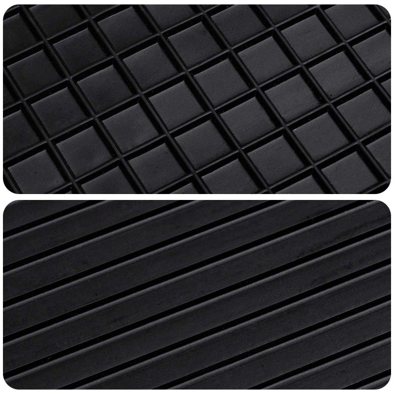 • Kestävä kumirakenne: Tämä matto on valmistettu kumista, joka kestää kovaa kulutusta ja tarjoaa mukavuutta jalkojen alle. Kumin joustavuus pitää maton muodossaan eri sääoloissa. Kattava suoja lattioille, istuu täydellisesti paikoillaan.