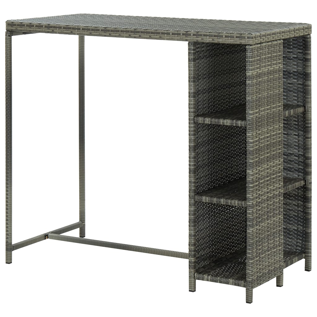 Baaripöytä säilytystelineellä harmaa 120x60x110 cm polyrottinki
