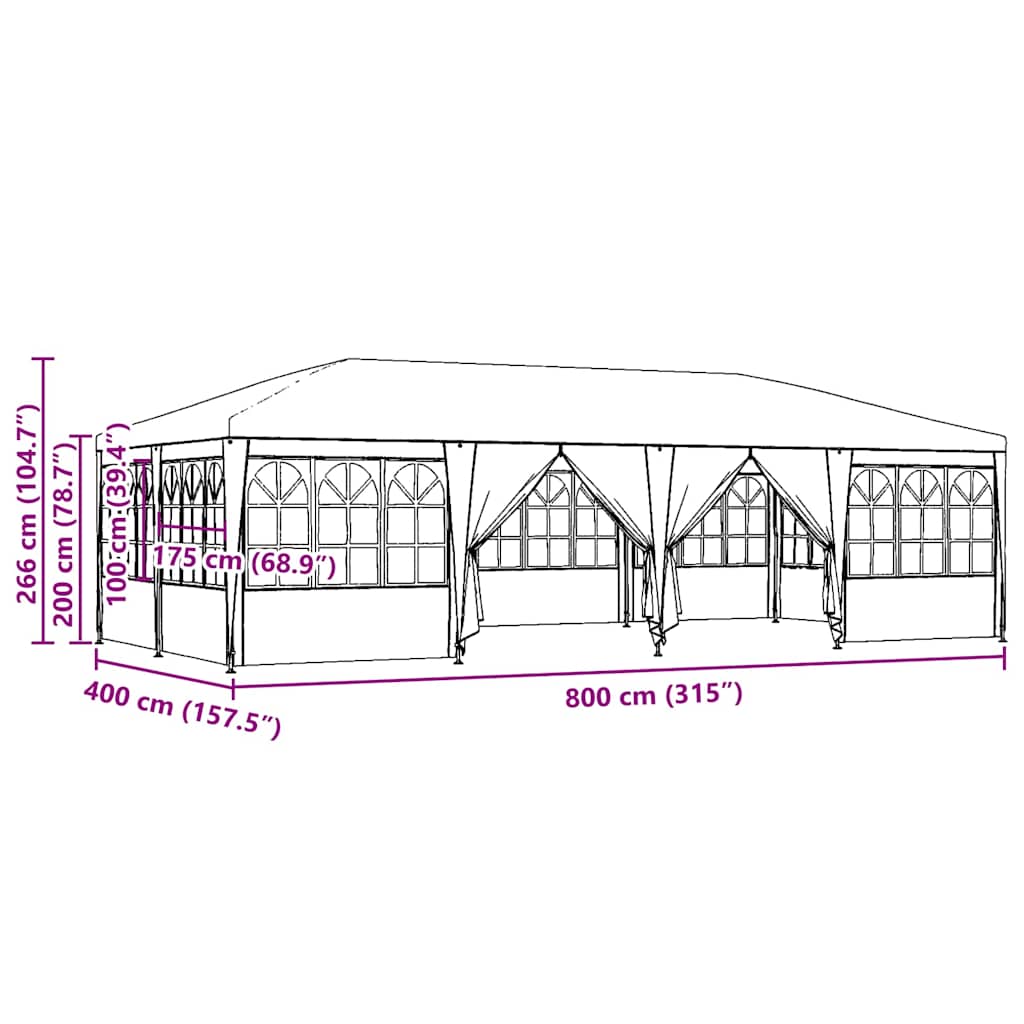 • Tilava muotoilu: Mitat 400 x 800 cm, tämä teltta tarjoaa sopivasti tilaa vieraiden nauttia ruoasta ja juomista. Koko tekee joustavasta järjestelystä helppoa.