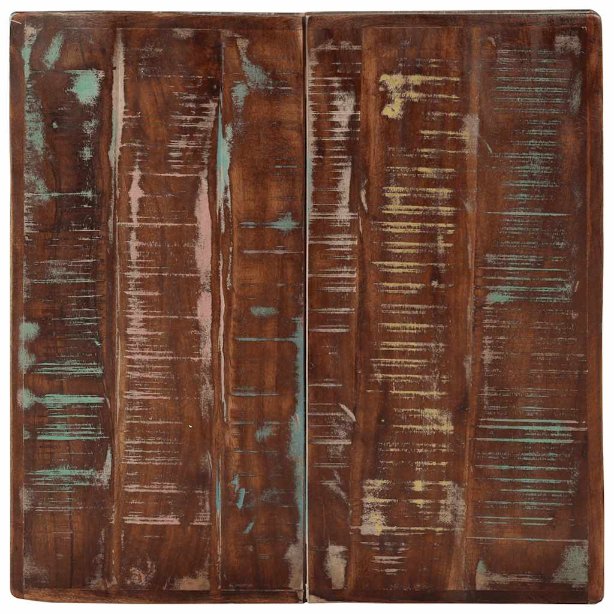 Pöytälevy on valmistettu kierrätetystä täyspuusta, joka on peräisin vanhojen purettujen rakennusten palkeista, lattiasta ja tukipalkeista. Se voi siten koostua monesta eri puulajista ja sisältää piirteitä niistä, kuten männystä, tiikistä, tammesta, mangopuusta, akaasiapuusta, jne. Kierrätetty puu on jo ikääntynyttä, kulunutta ja kuivaa, joten se ei kutistu eikä taivu. Valurautapohja tuo lisänsä pöydän tukevuuteen ja vakauteen. Ruokapöytä toimii sopivana alustana juomille tai muille tarvikkeille, jotka haluat pitää ulottuvillasi.