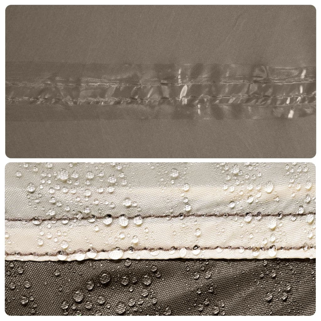 • Kestävä tafti-materiaali: Tämä suojapeite on valmistettu tafti-kankaasta PU-pinnoitteella, se on veden- ja tuulenpitävä. Lisäksi teipatut saumat estävät tehokkaasti sadeveden pääsyn, mikä auttaa säilyttämään kuivan ja mukavan sisätilan.