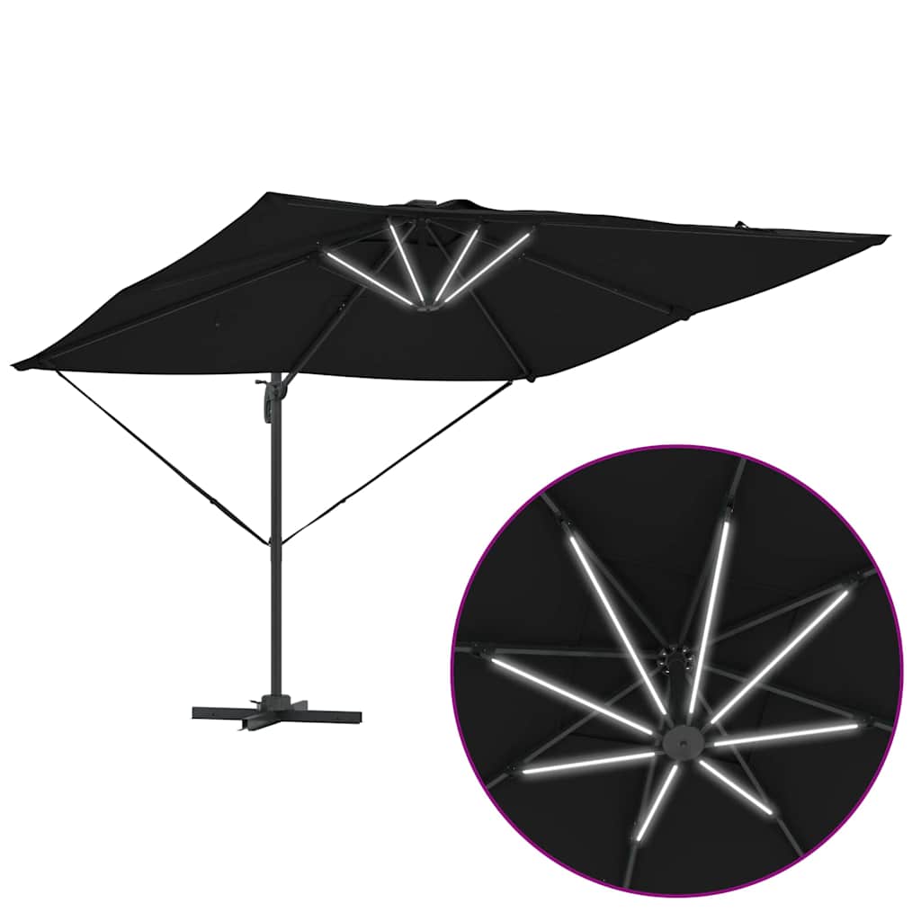 Cantilever Roma -paviljonki LED-aurinkosäällä – Musta, 286 x 285 x 270 cm, Alumiini