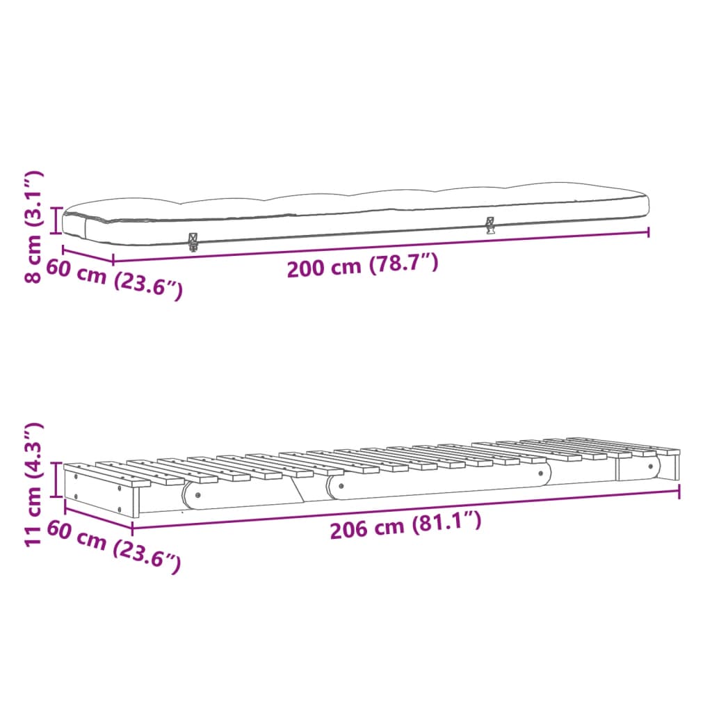 Futon vuodesohva patjalla vahanruskea 60x206x11 cm täysi mänty
