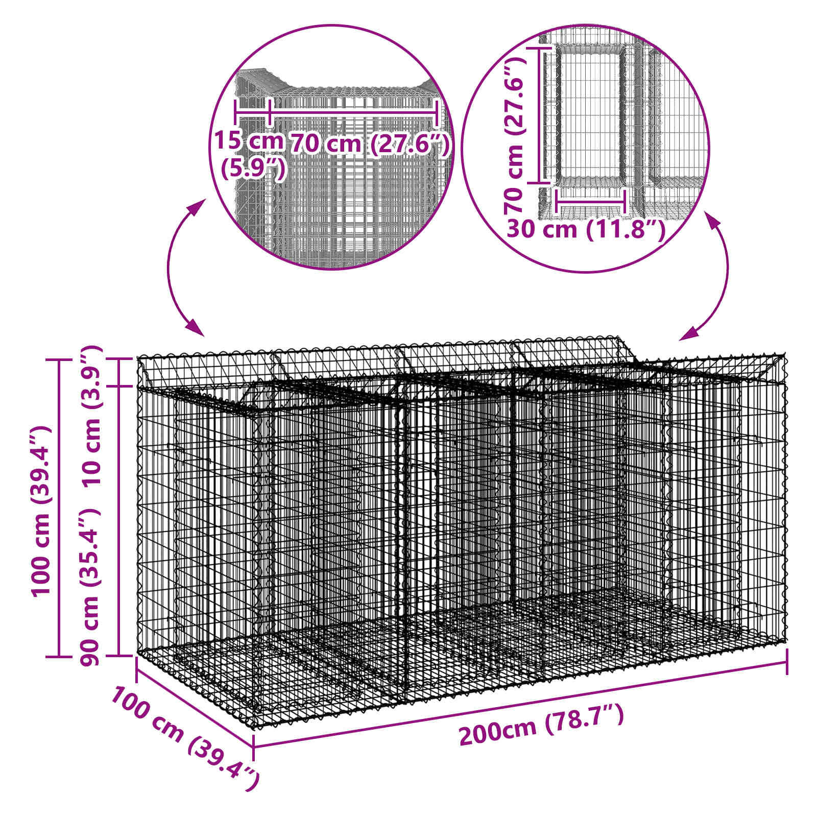 • 2 x Gabion kohotettu sänky