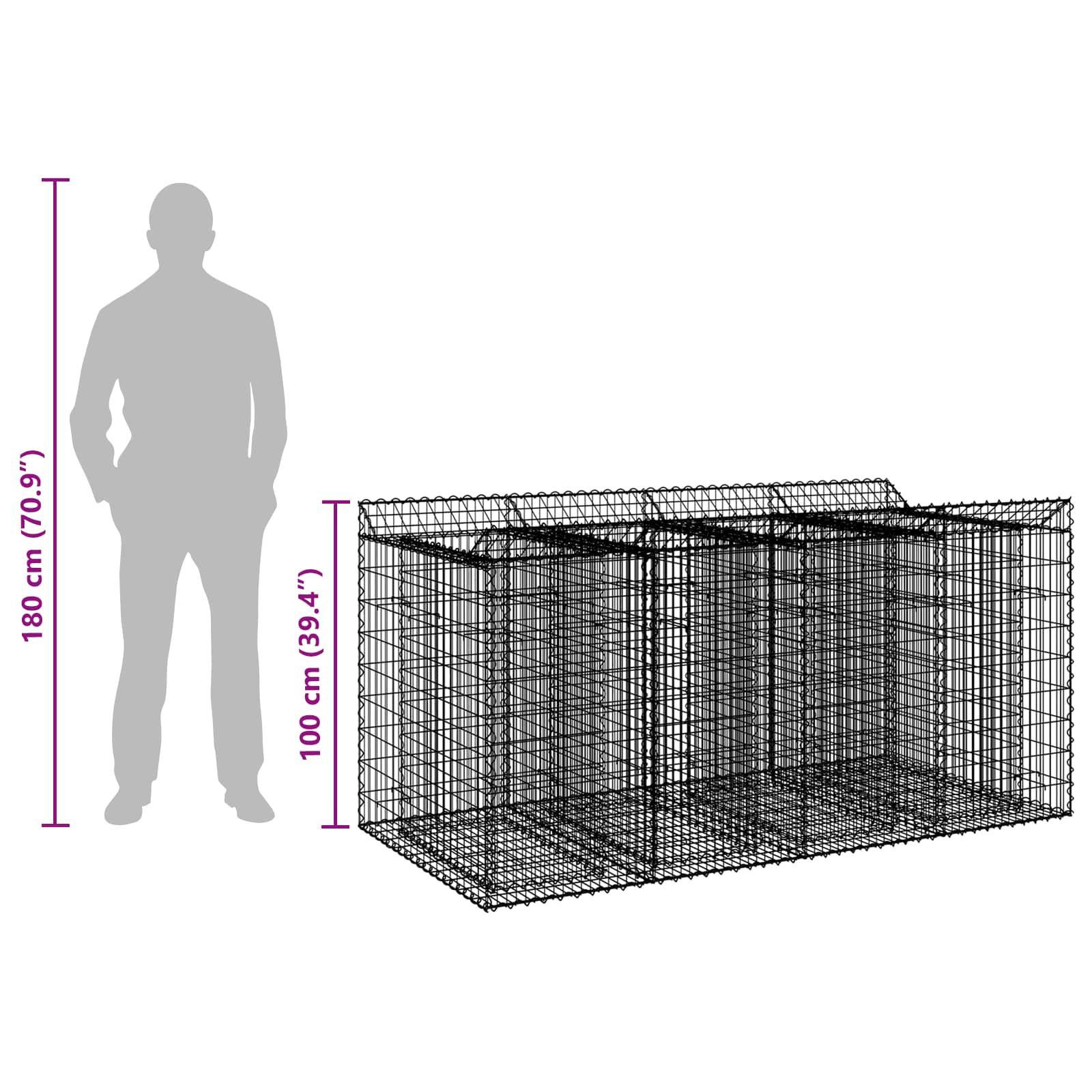 Gabion Kohotettu Peti 2 pcs Hopea
