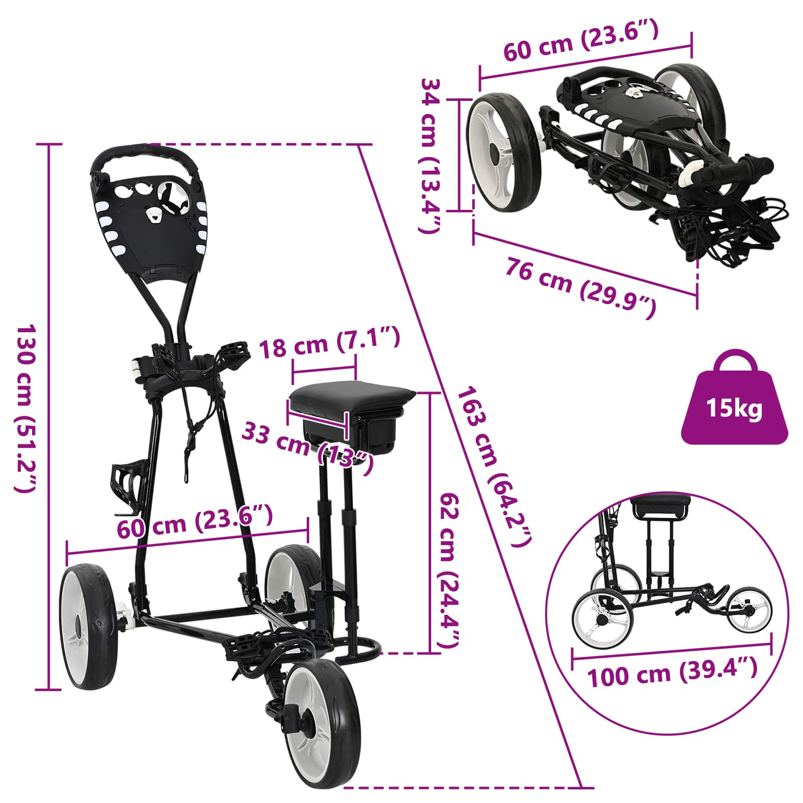 Golfvaunu istuimella Musta ja Valkoinen 100 x 60 x 130 cm Rauta
