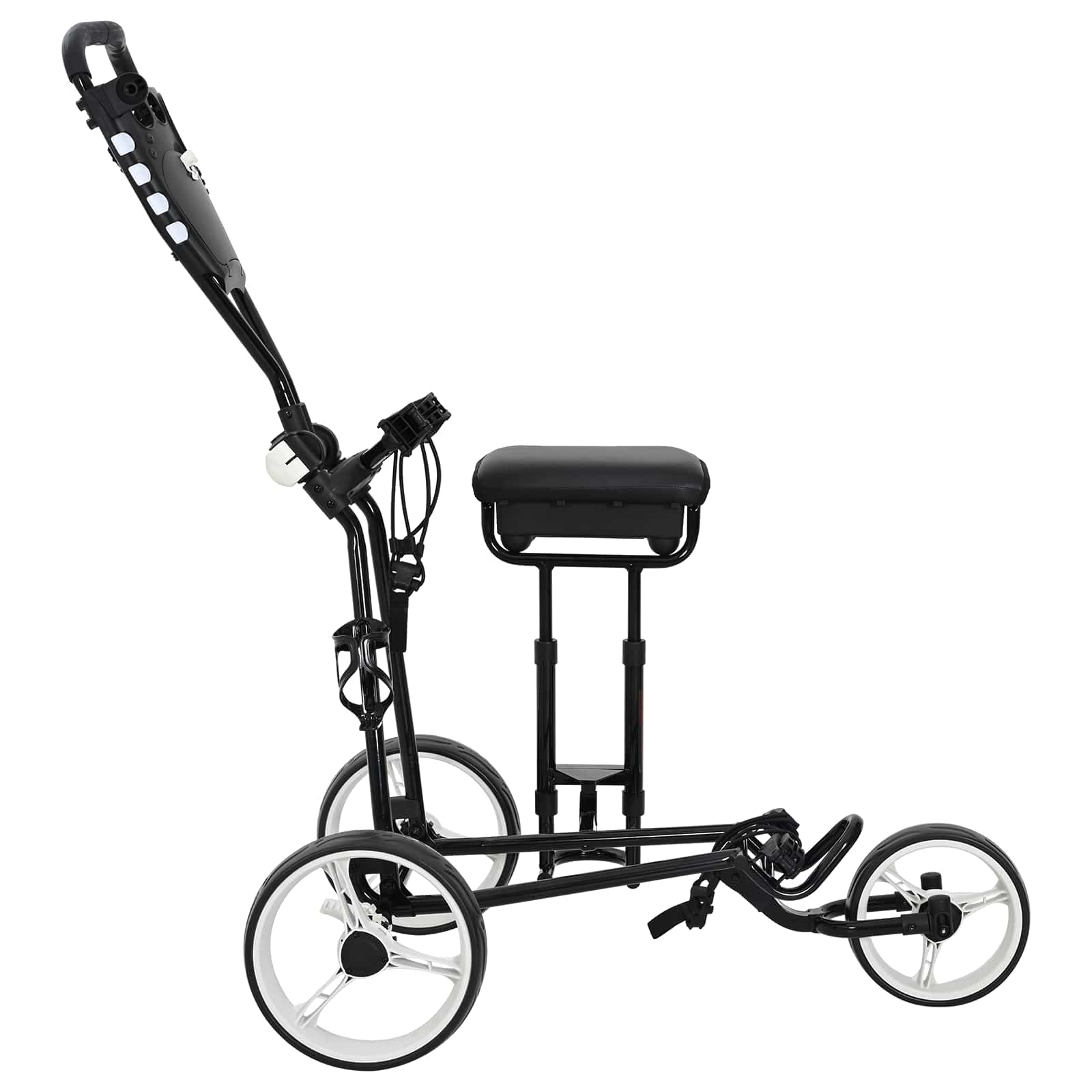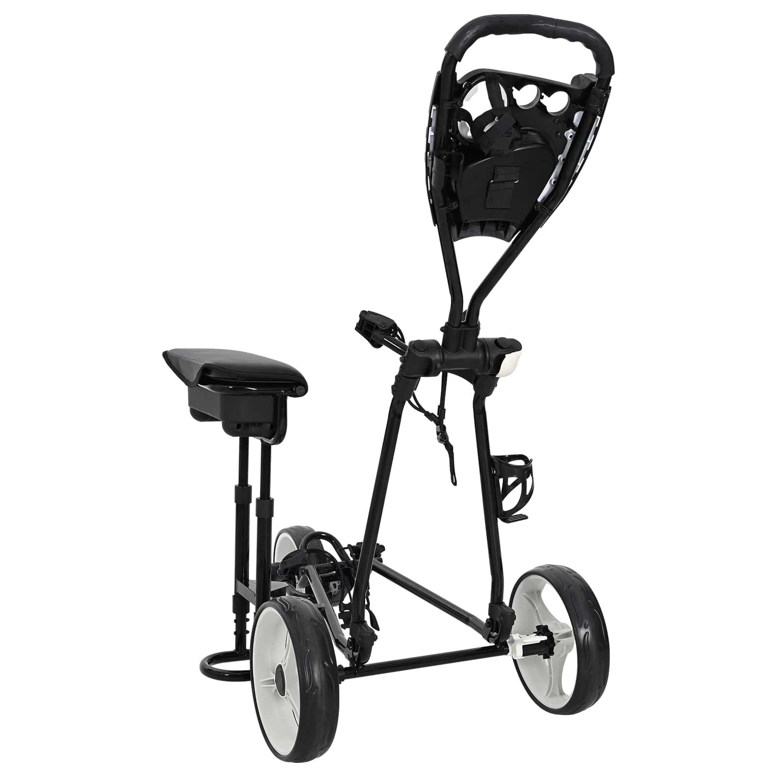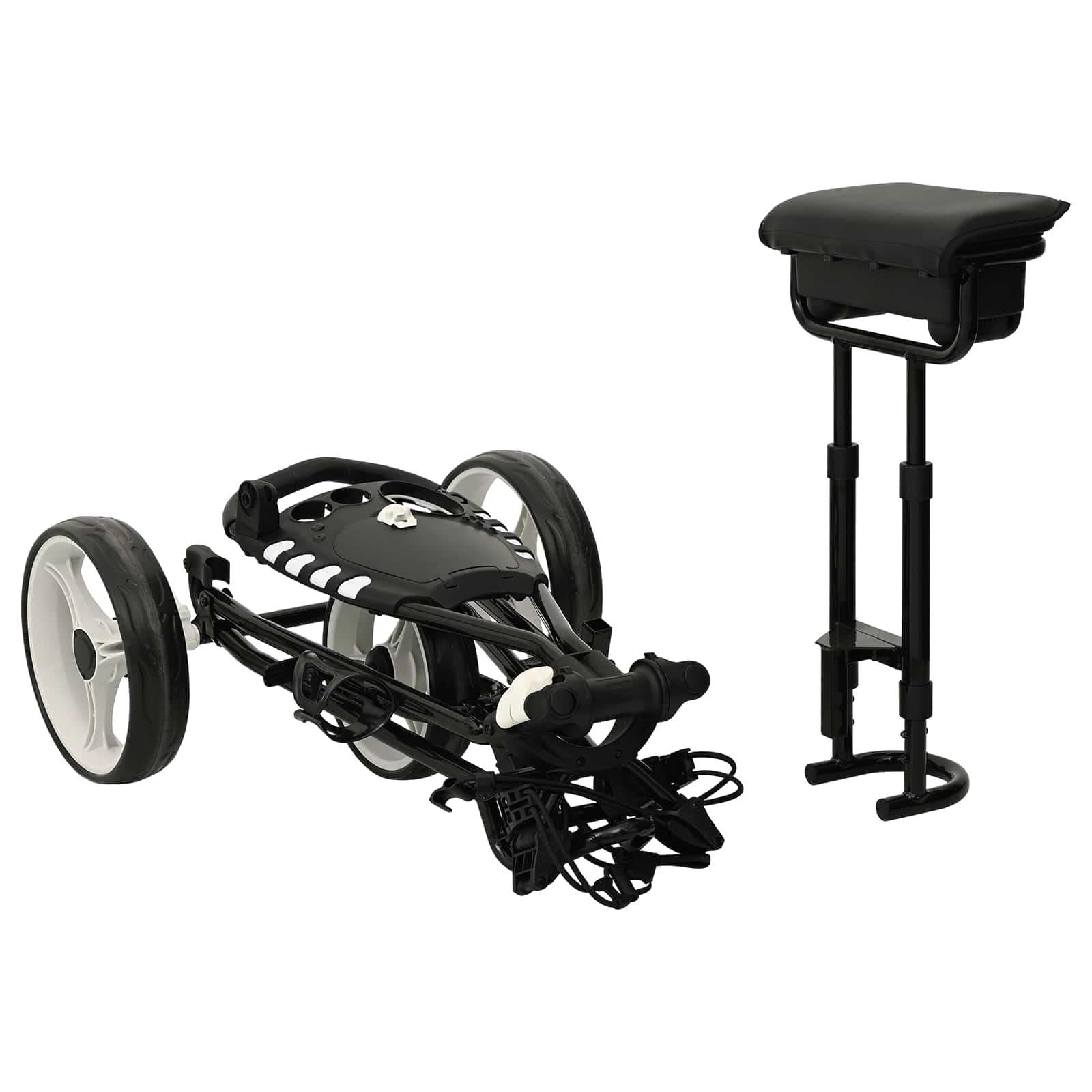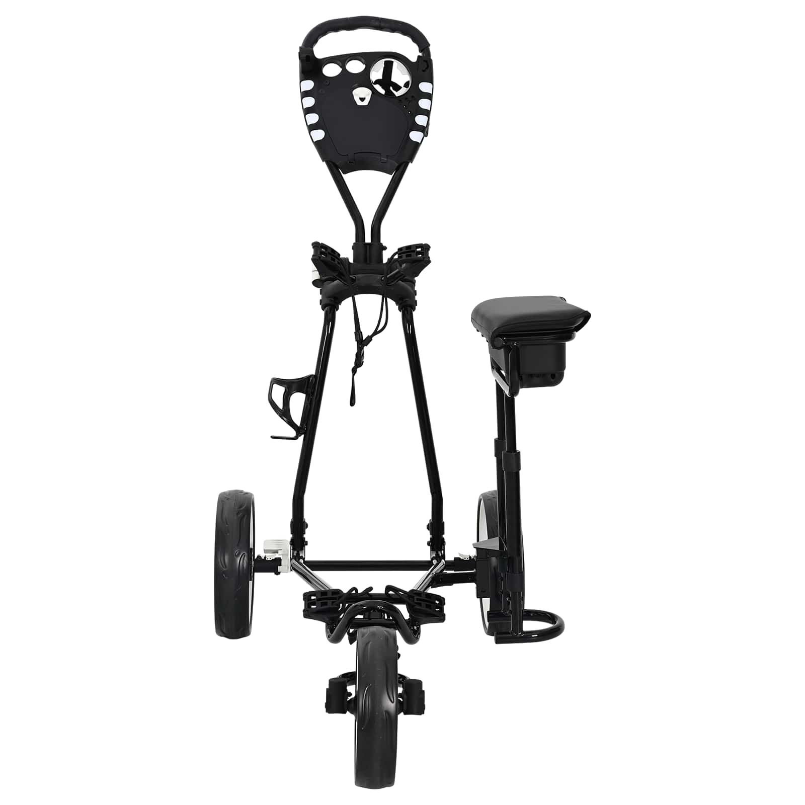 Koe mukavuus ja käytännöllisyys golfkentällä tällä nykyaikaisella golfkärryllä, jossa on istuin. Tämä kärry on suunniteltu tukemaan golflaukkua ja tarjoaa mukavaa lepoa golfpeliisi. Valmistettu kestävästä materiaalista, joka kestää ulkokäytössä, se on helposti kokoontaittuva, jotta voit säilyttää ja kuljettaa sen vaivattomasti.