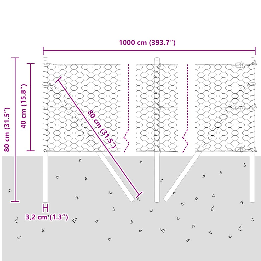 Heptagonaalinen aita Vihreä 0.4×10 m Teräs, Aitatolpat 7 kpl Vihreät Ø32 mm 80 cm Galvanoitu Teräs