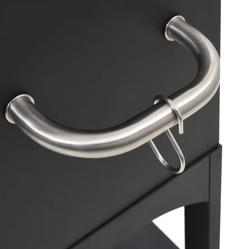 Uuni on valmistettu laadukkaasta jauhemaalatusta teräksestä ja on erittäin luja ja kestävä. Tuhkalaatikko on irrotettava, mikä tekee uunin puhdistamisesta helppoa ja nopeaa. Alla on kätevä hylly, jossa voi säilyttää uunikintaita tai muita tarvikkeita. Uunissa on sisäänrakennettu lämpömittari, joka näyttää sisälämpötilan. Kahden pyöränsä ansiosta uunia on helppo liikuttaa. Pizzakivi sisältyy pakettiin.