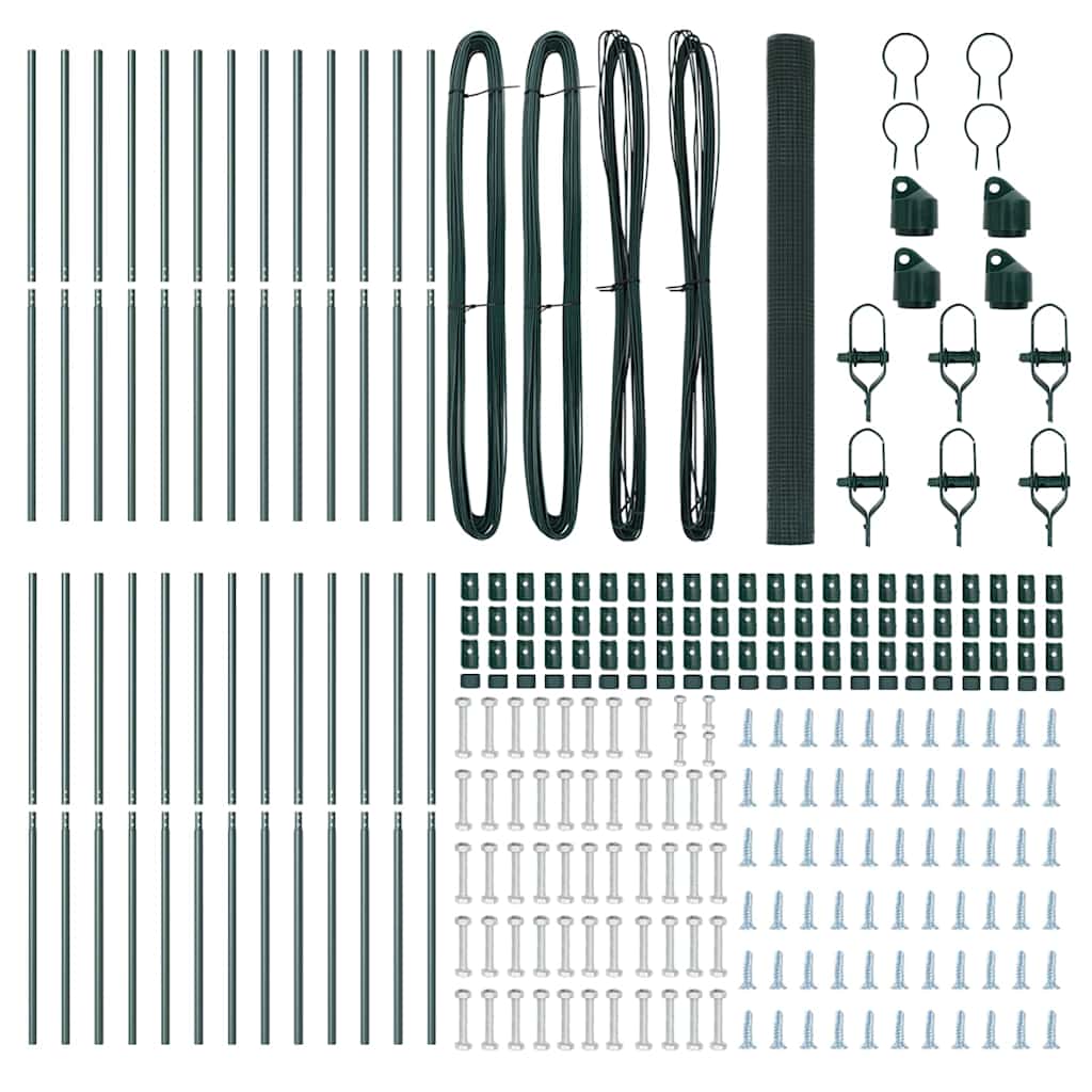 vidaXL:n hitsattu veräjä 13 pylvässetillä on täydellinen ratkaisu ulkoverkko tarpeisiisi, tuoden vakautta ja kestävyyttä laadukkaasta metallista. Kaunis vihreä väri sulautuu puutarhaasi, pitäen tilat turvallisina ja suojattuina.