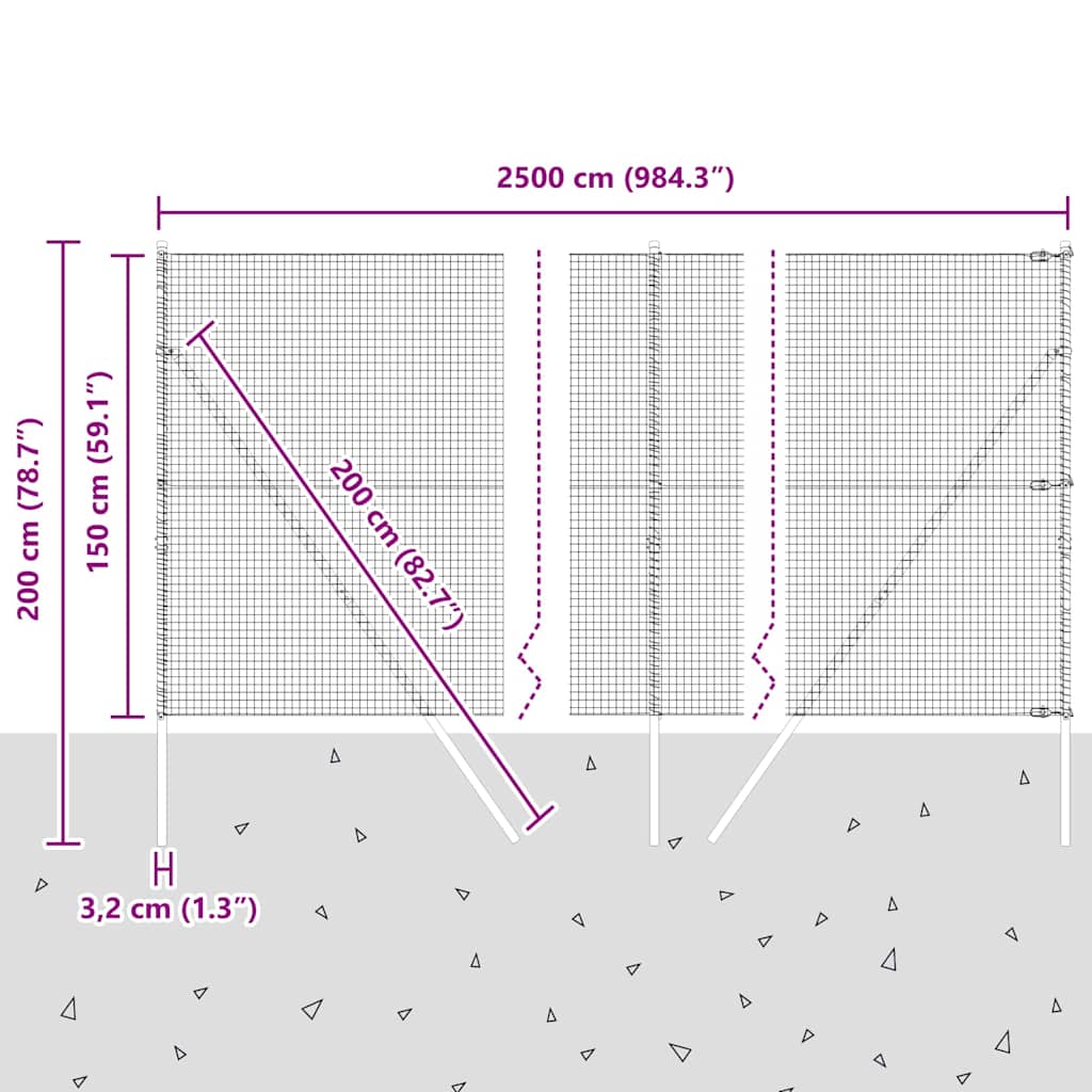 Hitsattu verkkoaita 13 pylväällä harmaa 1,5×25 m teräs
