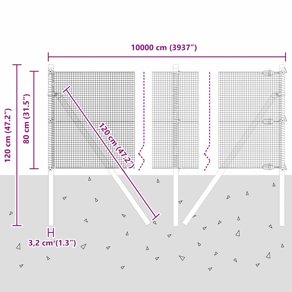 Hitsaustekniikkaa yhdistävä aita 13 pylvään kanssa Harmaa 0.8×100 m Teräs