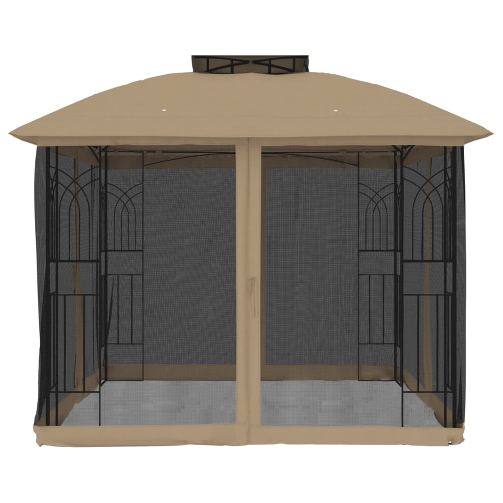 Huvimaja tuplakatolla ja verkkoseinillä taupe 2,94×2,94 m teräs