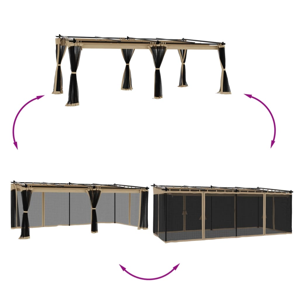 Huvimaja verkkoseinillä taupe 6×3 m teräs